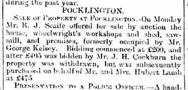 Memorial Lease and Release seventeenth and eighteenth days of November 1829 between Teresa Haggertson Constable late of Pocklington now in Thayer Street Manchester Square Marylebone Middlesex Spinster of the one part and John Burnell of Pockllington Gentleman of the other part and the Release made or expressed to be made Between the said Teresa Haggertson Constable of the first part the said John Burnell of the second part William Hobson of Copmanthorpe York Farmer of the third part Charles Haggertson Constable Stanley late of Allerthorpe in said County of Somerset a esquire of the fourth part and Martin Burnell of Bishopthorpe in the said Ainsty of the city of York Gentleman of the fifth part messuage tenement a dwelling house with the barn stable and other Out Buildings and garth adjoining and belonging also All that piece or parcel of pasture grounds containing by all that three acres two woods and 28 perches two acres three roads and ten perches Also one other close or parcel of a Ground being called the Corn Field containing 4 acres 10 perches one other close piece parcel grass field 4 acres one wood 36 perches making together fifteen acres and 3 perches formerly known as Hall Garths and Beckland premise lying together at Pocklington and joining upon the same dwelling houses formerly occupied by Teresa Haggertson Constable and Rev David Jones are now of the said John Burnell and Teresa Haggertson Constable of John Weddall and boardered by lands belonging to Robert Dennison Esq of the north, the road called the Mile on the West, on the Mill called Low Mill on the east and Mill Dam on the south. |