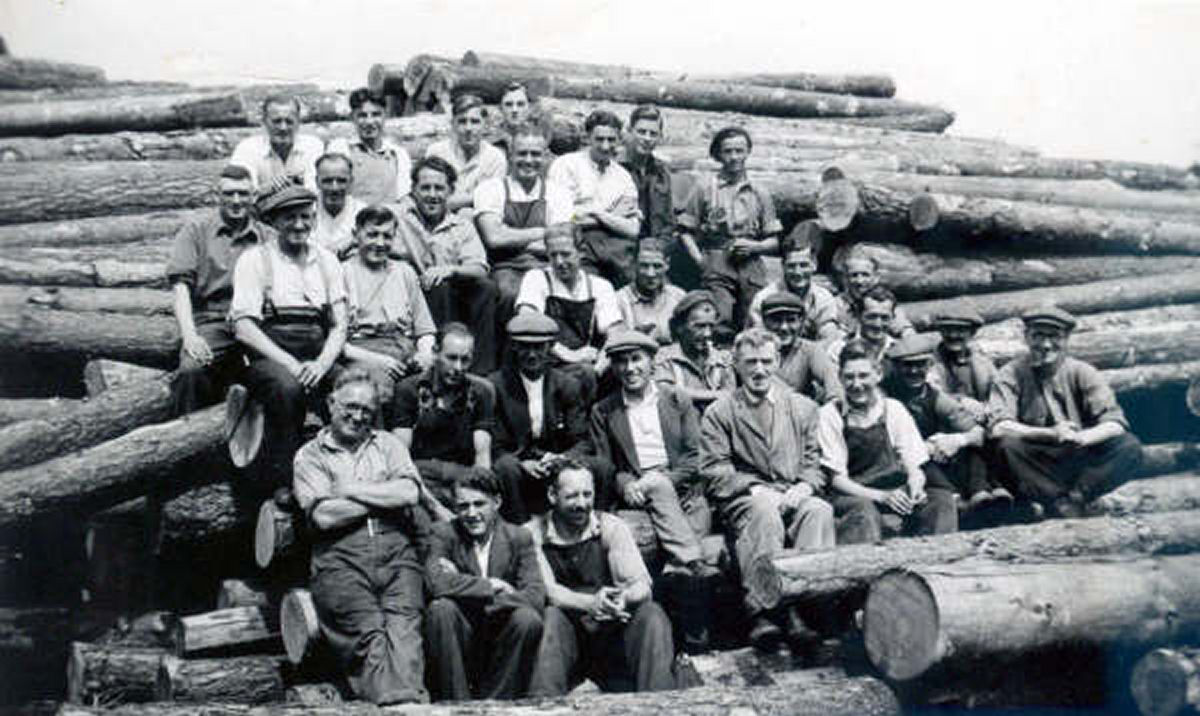 The workers at the Station Sawmills, Pocklington,around 1945-1950. The proprietor was E Wells of Beverley. The Manager was G Robinson. My thanks to John Eastwood for supplying me the photograph, the newspaper clipping, and the names. I have hopefully matched up the names correctly. If anyone spots a mistake, please let me know.