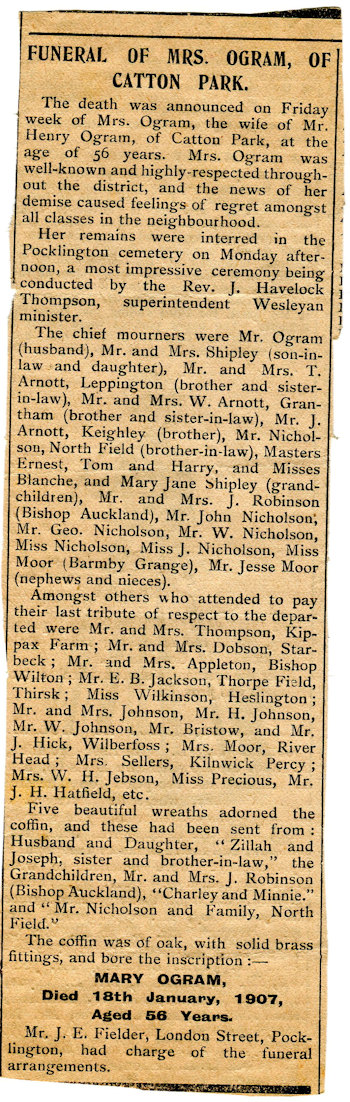 - Mary Ann Moor - b 1828 in Pocklington, m George Angus (b in Hull) a blacksmith. They lived in Pocklington. No record of children.