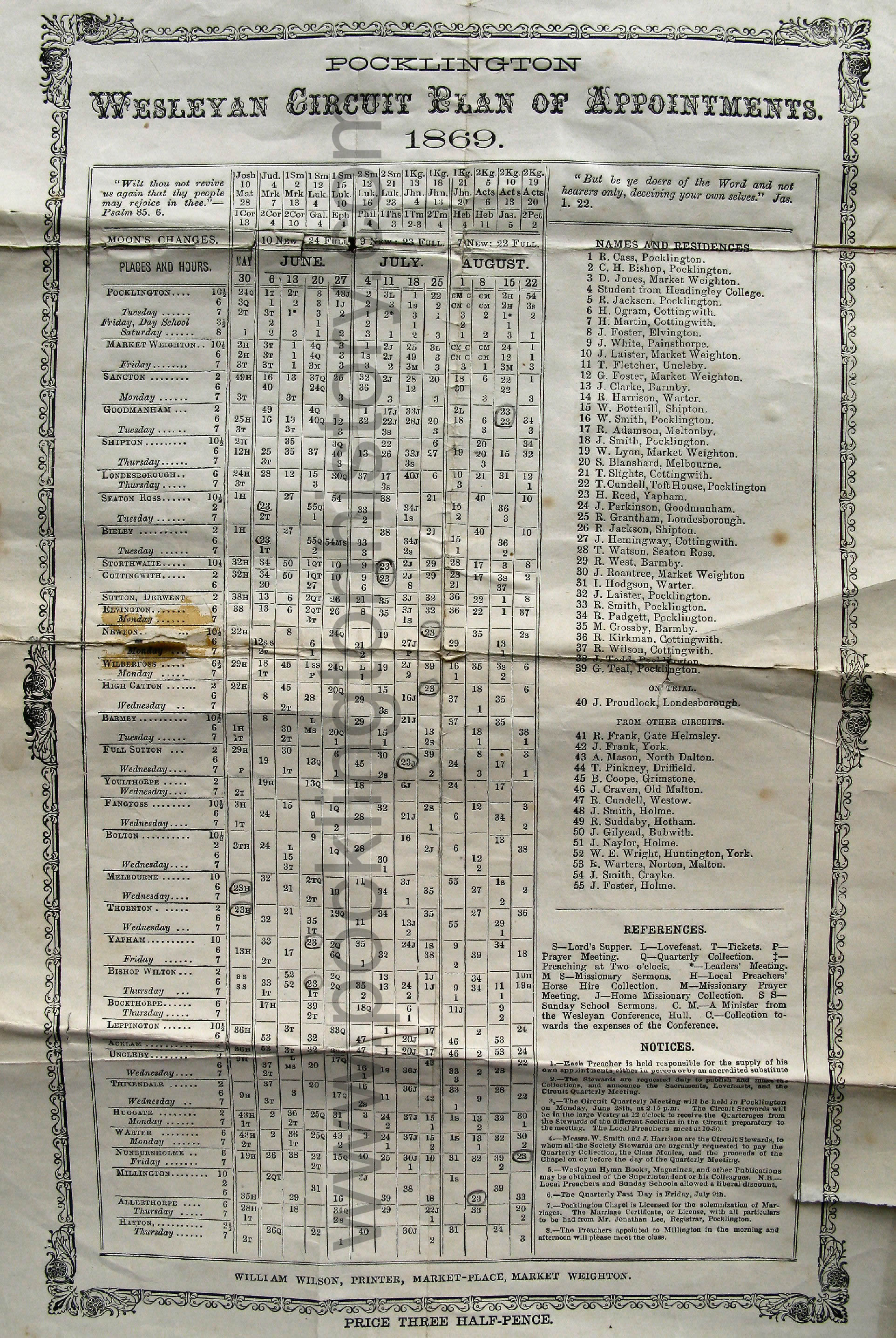 Pocklington Methodist Circuit 1869
