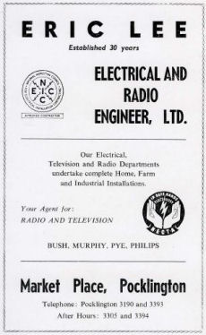 A prominant Pocklington family business closed in 2016 after being in business for 83 years. Eric was the son of Fred Lee the town entrepreneur that started the first cinema in Pocklington in 1912. Eric learned his shop skills in the Tobacconist shop set up by his late father and which carried on in the name of Fred Lee until the 1970's. Like his father before him Eric loved the new technology that the electric industry brought. He founded Eric Lee Electrical, in Market place in 1933, in the year that electricity came to the town to sell electrical goods and wireless radios.