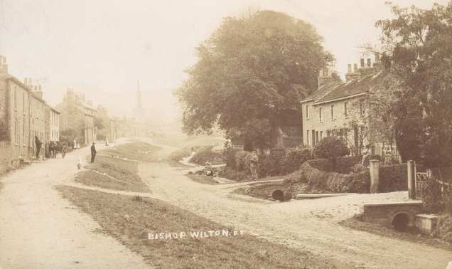 There is obviously some excitement in the air! A lot of people are out on the street and it isn't just because there is a photographer about (F. Slights of Pocklington). Under magnification you can see an attraction outside the Cross Keys pub at the top of the street just by the cross roads. There are two travellers' caravans with what looks like a sideshow in between them - have a look at this enlarged detail. This photo must have been taken at the same time as the one that shows a cart from W. Culline's Steam Circus by the beck just beyond the cross roads. |