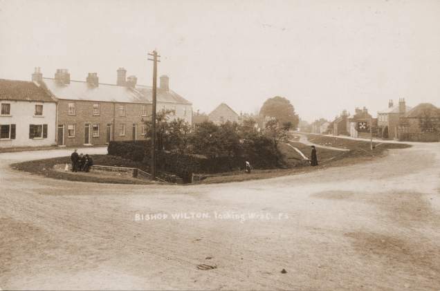 This is by F. Slights of Pocklington. There is just a chance that's his wife and child gazing into the beck. On the right, by the side of the road, there's the sign for The Cross Keys which ceased to trade after the Fleece Inn (just visible on the extreme left) was rebuilt in the 1920s. |