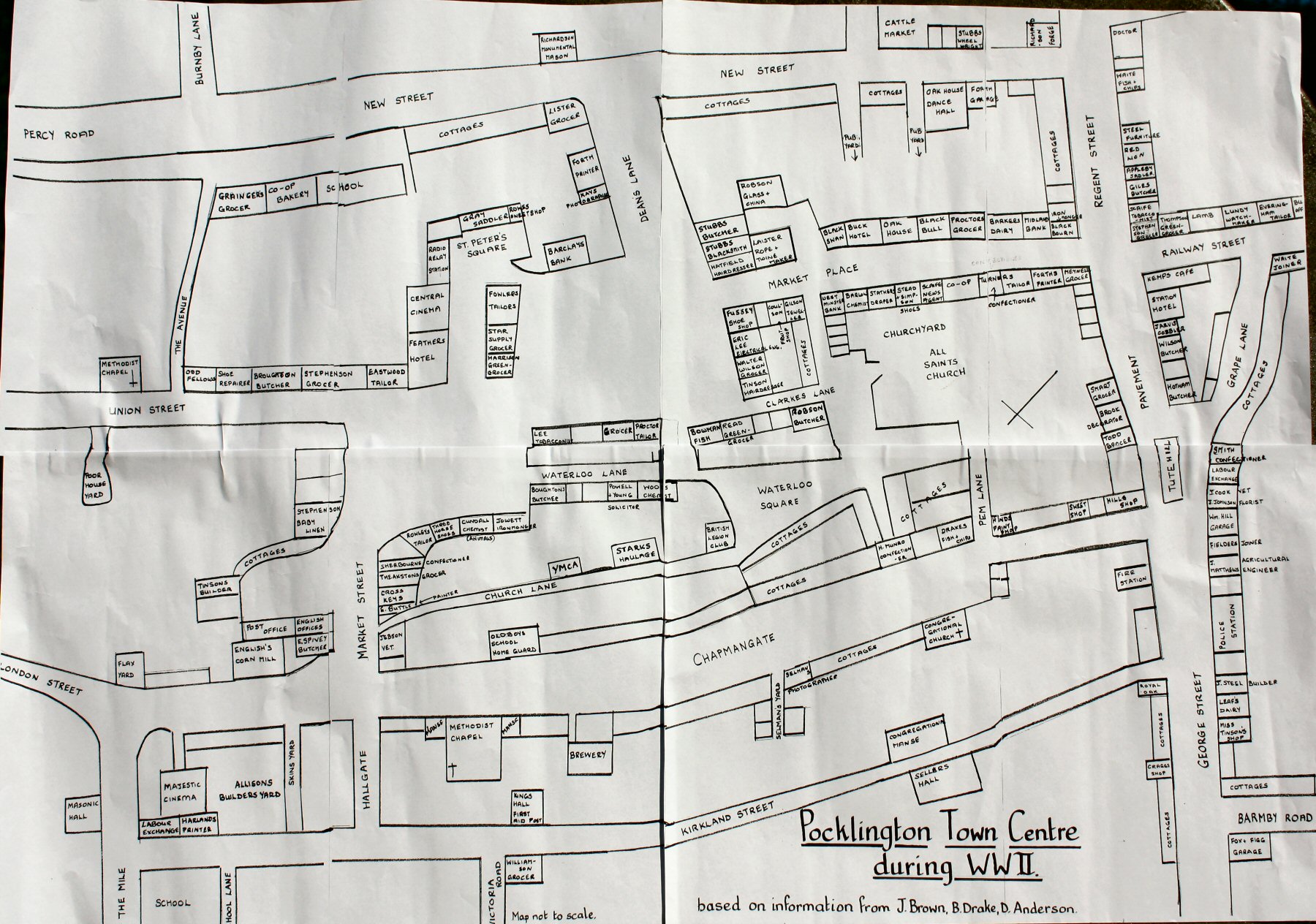 This map of Pocklington was drawn up by Christine Hastwell and members of the U3A, as part of their research for the forthcoming book on Pocklington in the war.